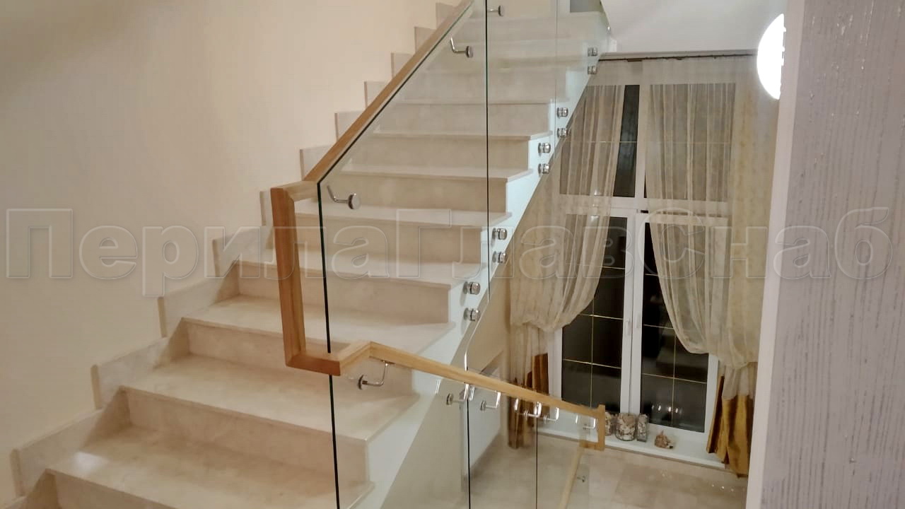 Стеклянные ограждения маршевых лестниц в интерьере - фото