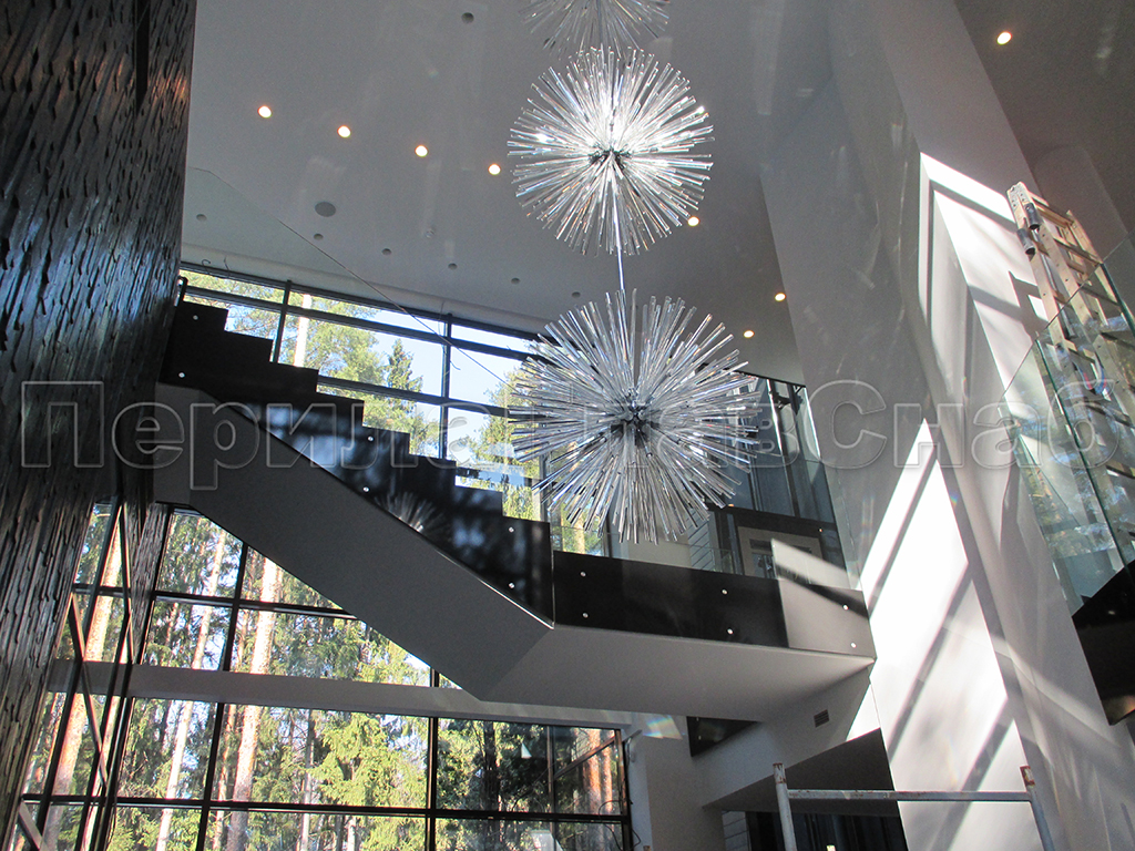 Ограждения лестниц на несущем стекле с подсветкой в Казани. Готовые проекты ПерилаГлавСнаб
