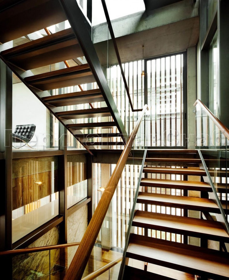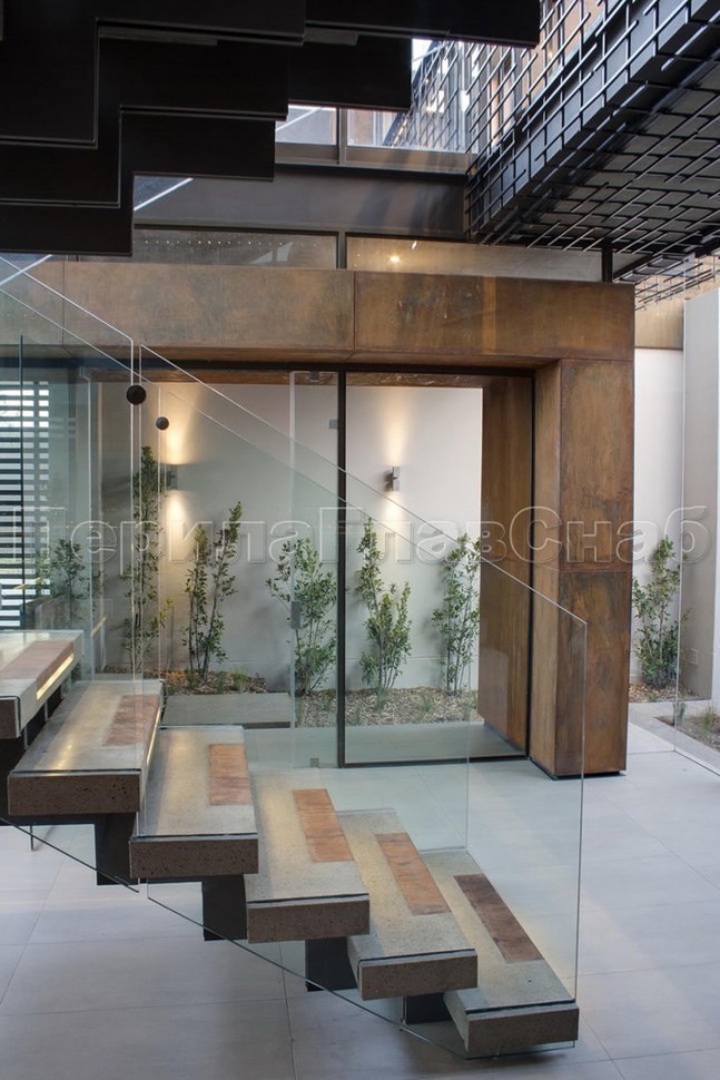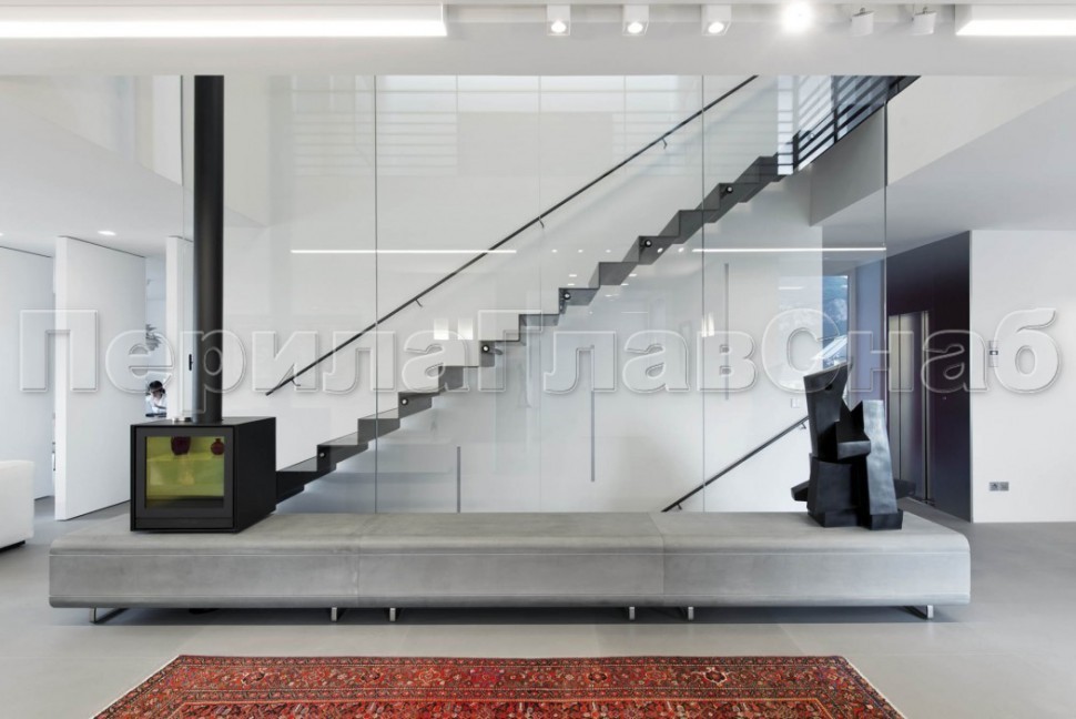 Ограждения лестницы без поручня с зажимными стеклодержателями и стойками