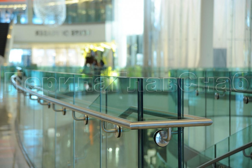 • Самый интересный вариант - установка защитного профиля на кромку стекла и специального выносного поручня.
