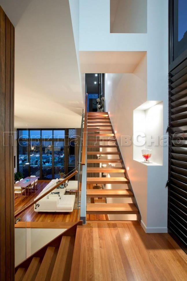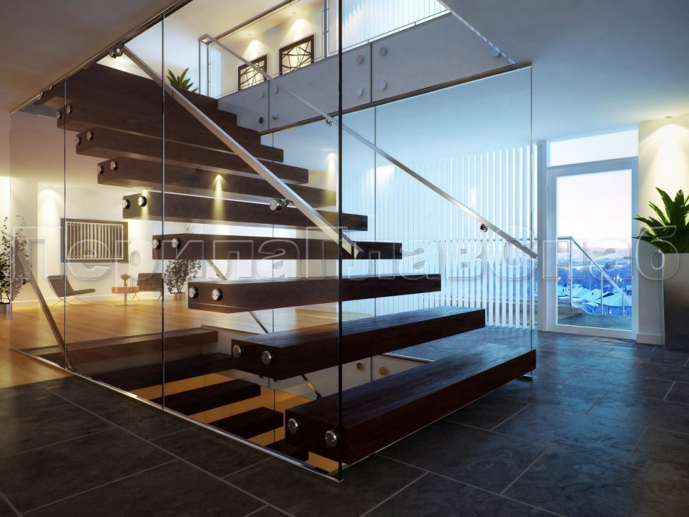 Ограждения лестниц на несущем стекле с подсветкой