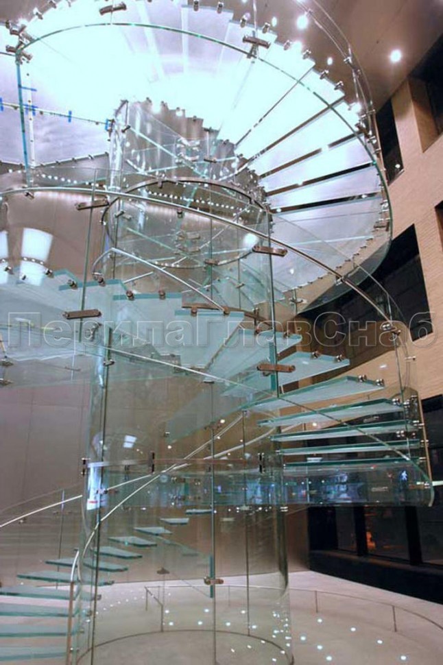 Стеклянные ограждения винтовой лестницы и баллюстрады
