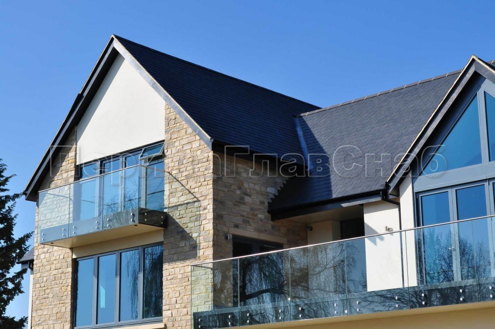 Ограждение на несущем стекле с торцевым креплением для крыш