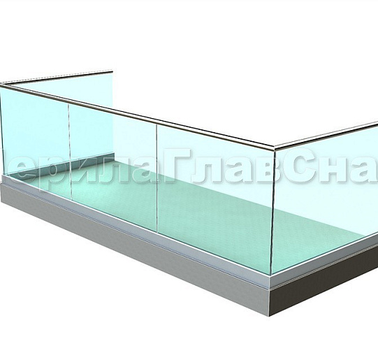 Данный тип ограждений в своей конструкции стоек не содержит. Несущие функции выполняет толстое каленое стекло. Само же несущее стекло крепится к балконной плите на алюминиевый профиль, который способен выдержать очень большие нагрузки, поэтому очень надежный.