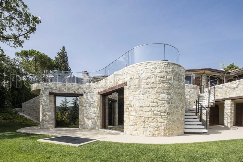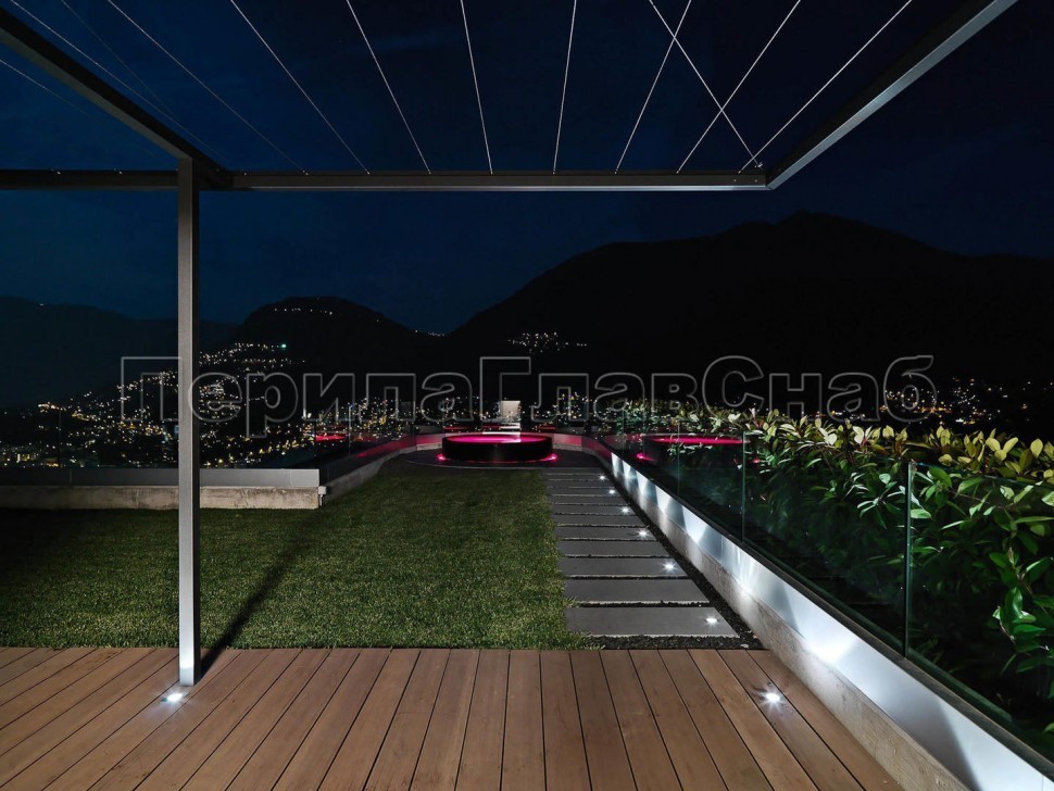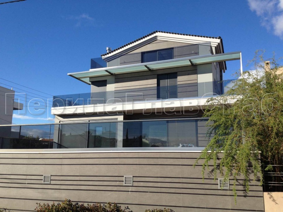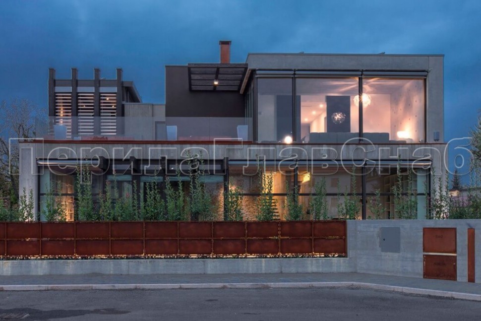 Несущее стекло крепится на алюминиевый профиль. Профиль изготовлен из полированного (зеркального) анодированного алюминия. Крепления профиля к плите основания осуществляется в торец. В целом, конструкция таких перил очень надежная.