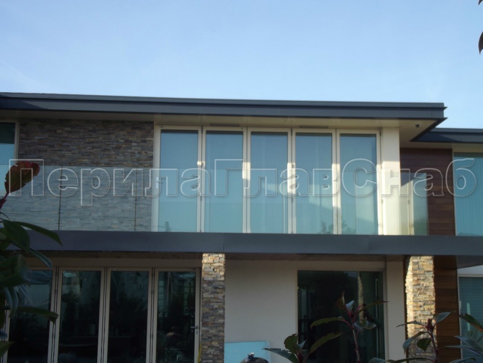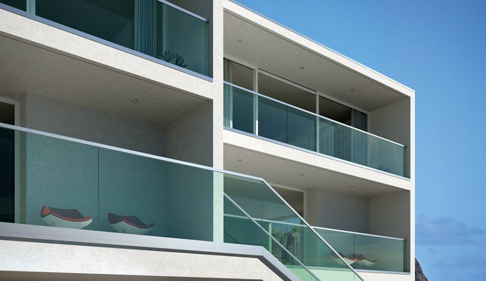Это ограждение балконов экранного типа, с заполнением из стекла. Полностью отсутствуют стойки, поэтому конструция внешне выглядит очень целостной.