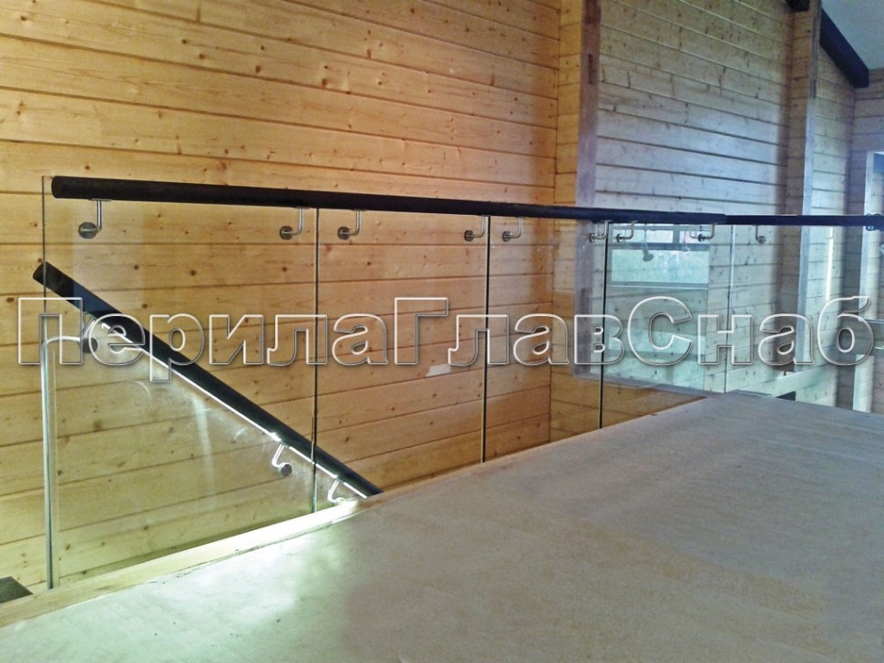 Ограждение с деревянным поручнем с зажимными стеклодержателями и стойками