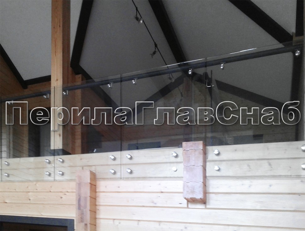 Ограждение с квадратным деревянным поручнем на точечном креплении