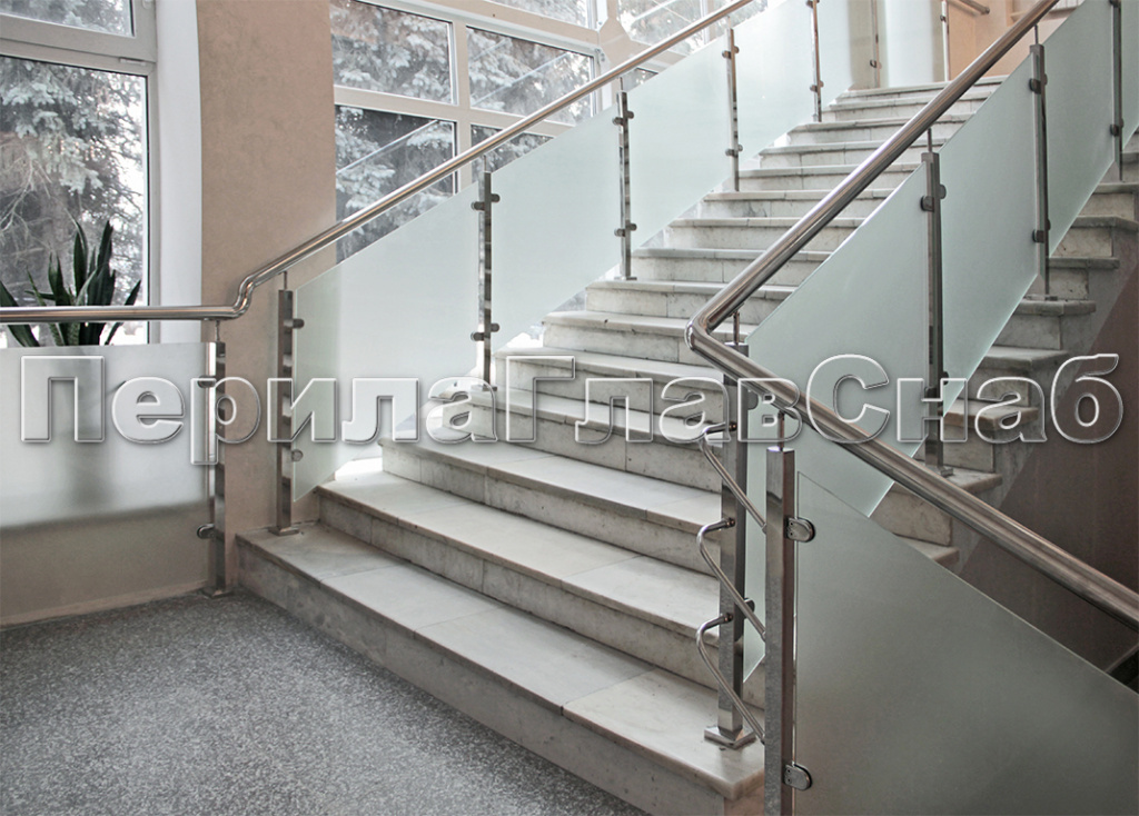 Ограждение для лестницы из нержавейки с зажимными стеклодержателями для крыльца в Казани. Готовые проекты ПерилаГлавСнаб - фото 1 Ограждение для лестницы из нержавейки с зажимными стеклодержателями для крыльца в Казани. Готовые проекты ПерилаГлавСнаб - фото 2