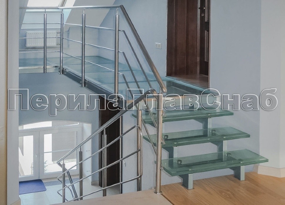 Стеклянные ступени и стеклянная площадка на лестнице в Казани. Готовые проекты ПерилаГлавСнаб - фото 1