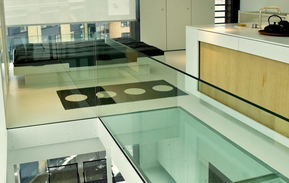 Стеклянное перекрытие из матового стекла на внутреннем балконе