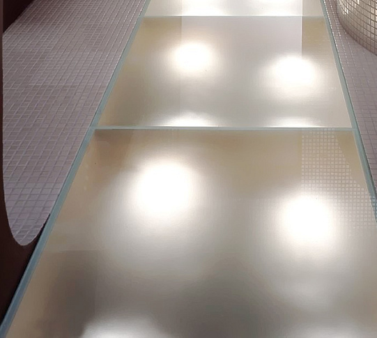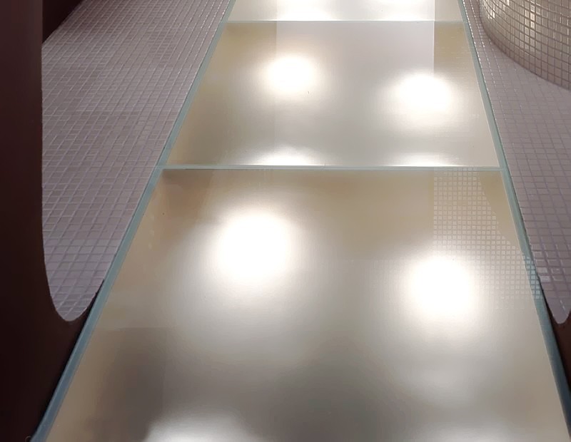 Стеклянное перекрытие из матового стекла на внутреннем балконе