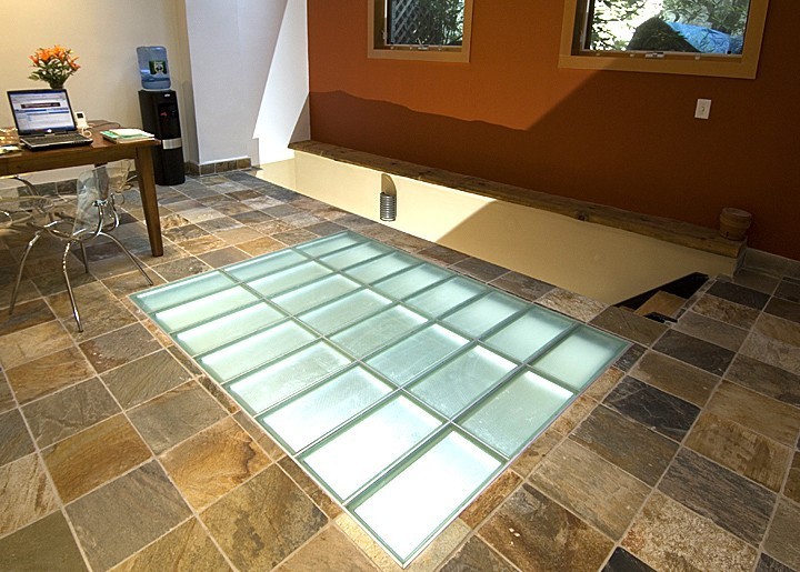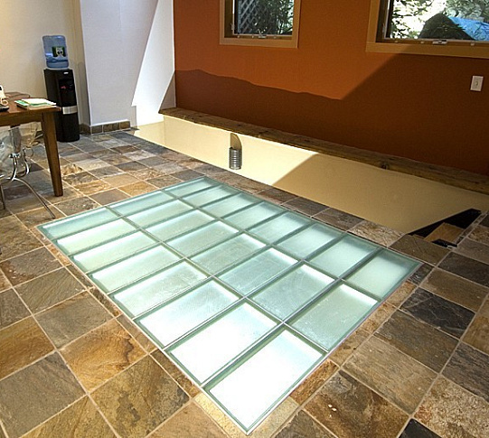 Стеклянное перекрытие из матового стекла на внутреннем балконе