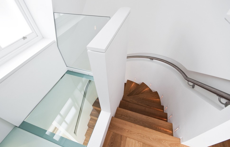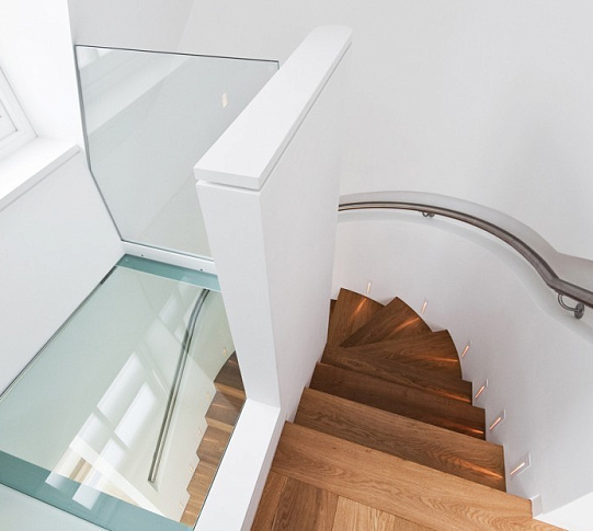 Стеклянное перекрытие из матового стекла на внутреннем балконе