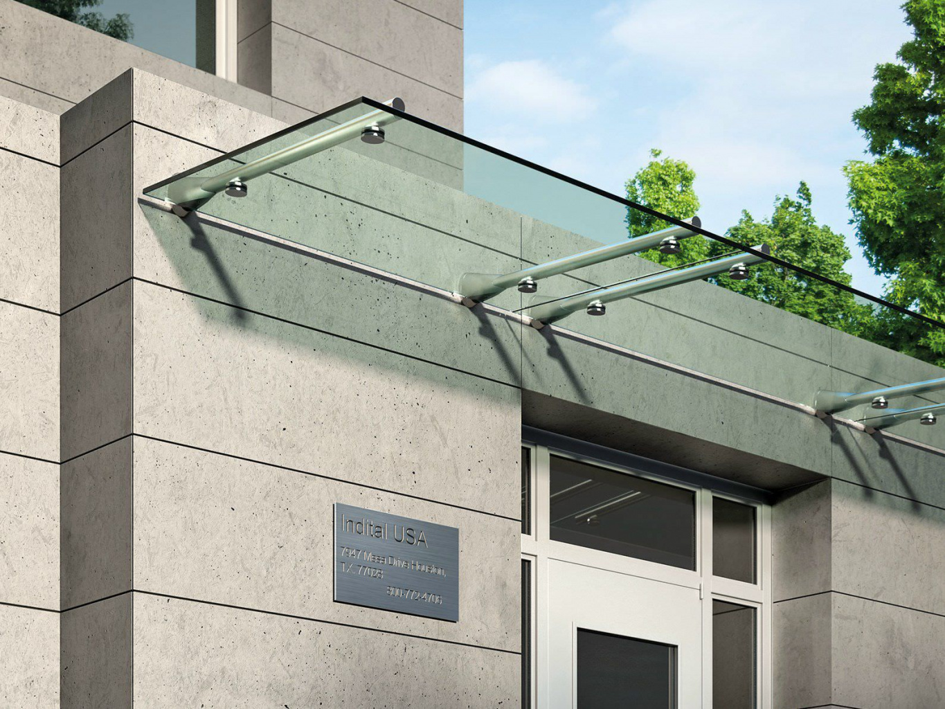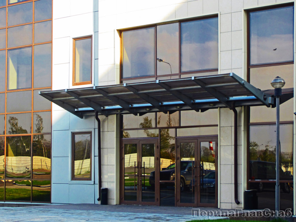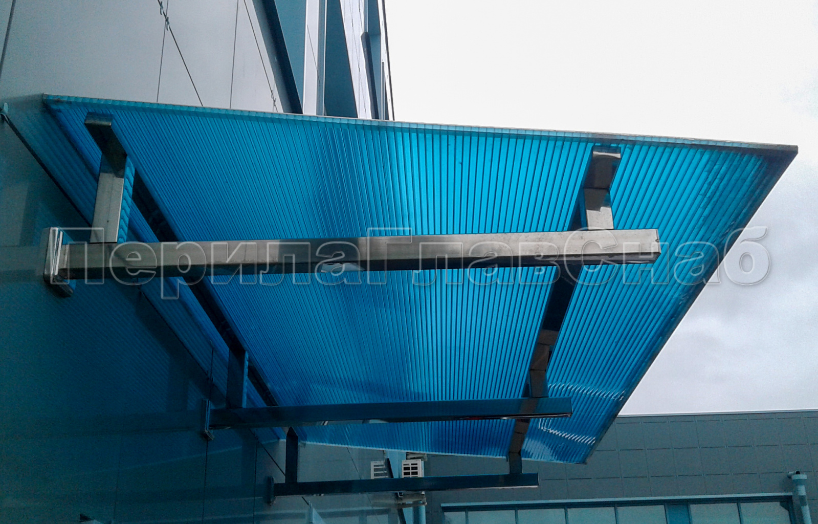 Стеклянный консольный навес на Г-образном каркасе - вариант 2