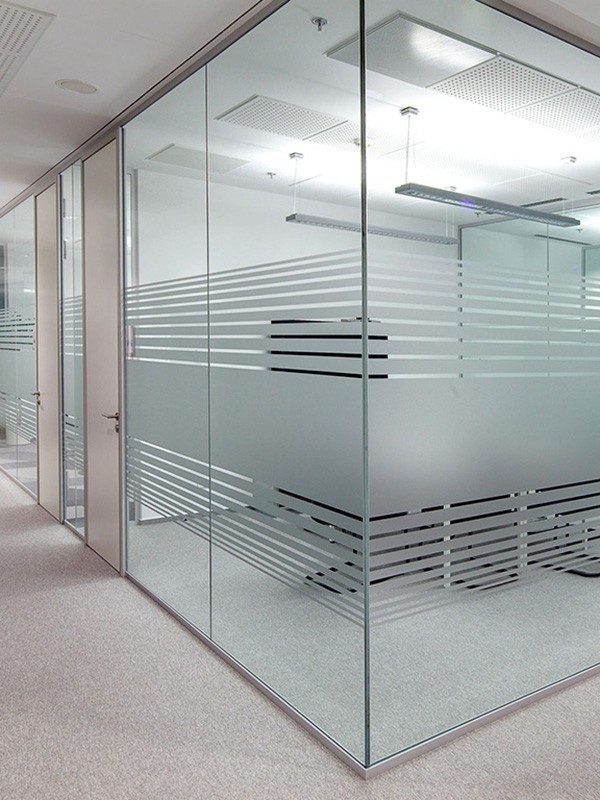 Записаться на встречу Стеклянные офисные перегородки с матовой пленкой