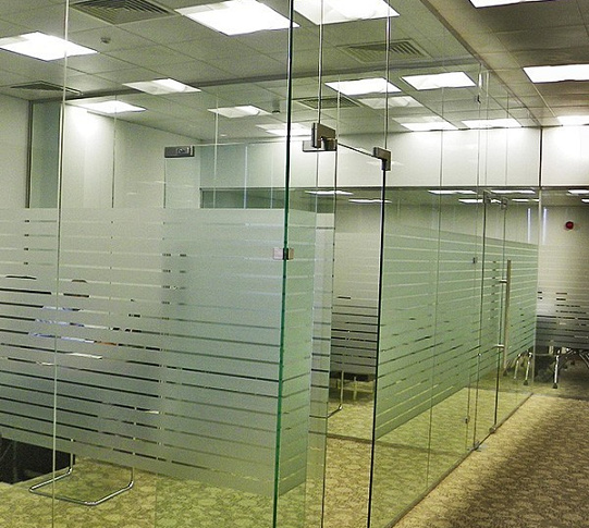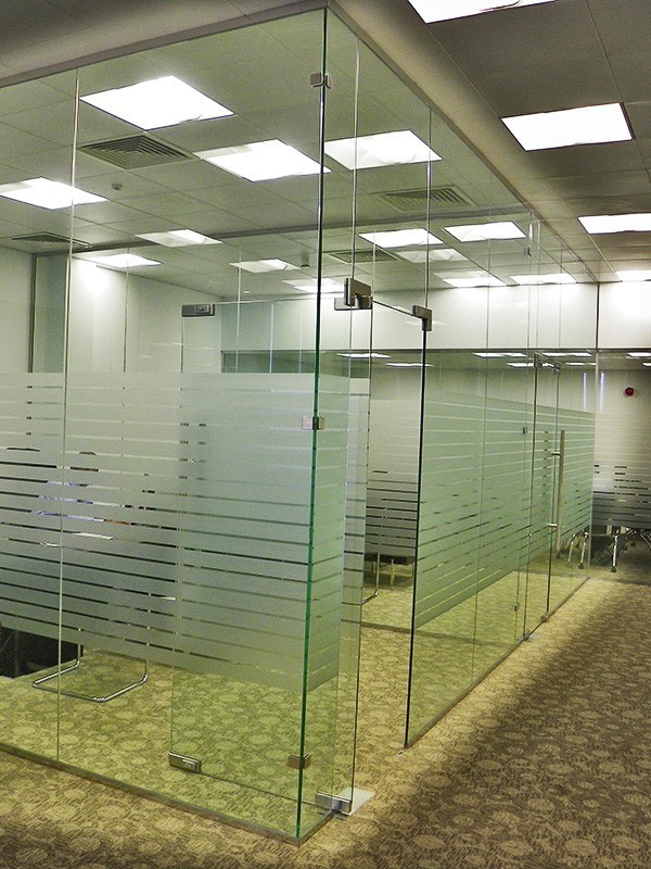 Стеклянные перегородки в офисе с закаткой пленки